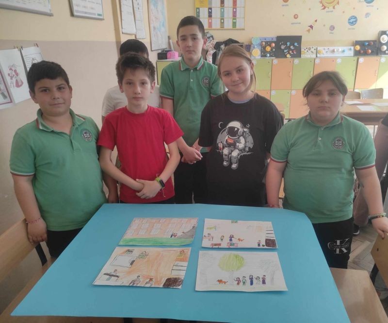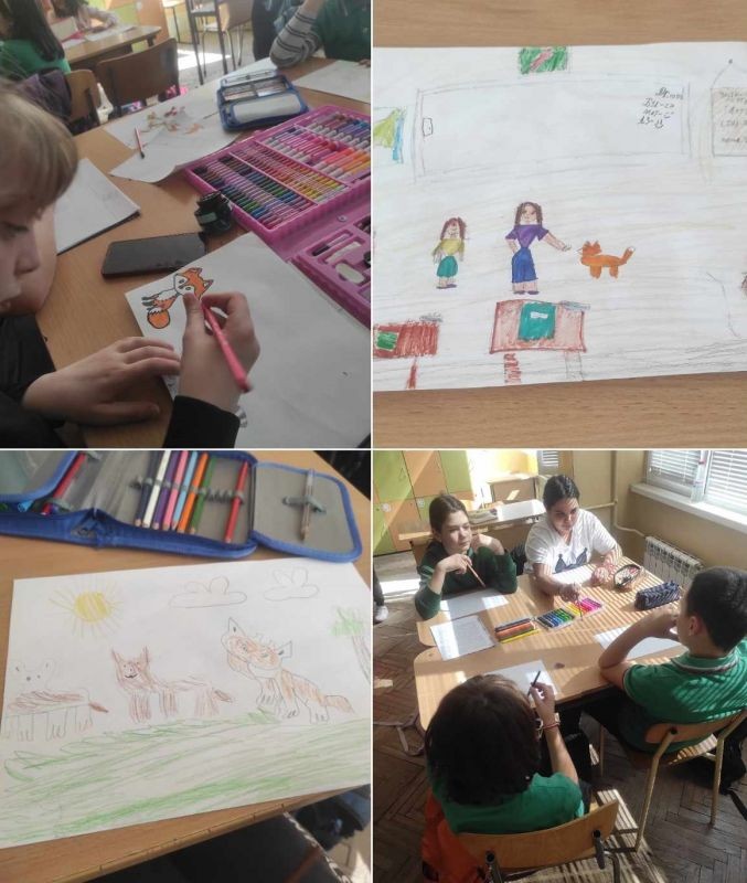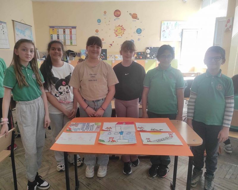 Учениците от четвърти клас, членове на клуб "Еко-приключенци", заедно със своите ръководители Събина Кутрова и Невелина Кикьова, се включиха в творческа дейност, която съчетава слушане и рисуване. Децата бяха разделени на отбори, като задачата за всеки екип беше да нарисува сториборд на тема "Лиско Бялата лапа в града".