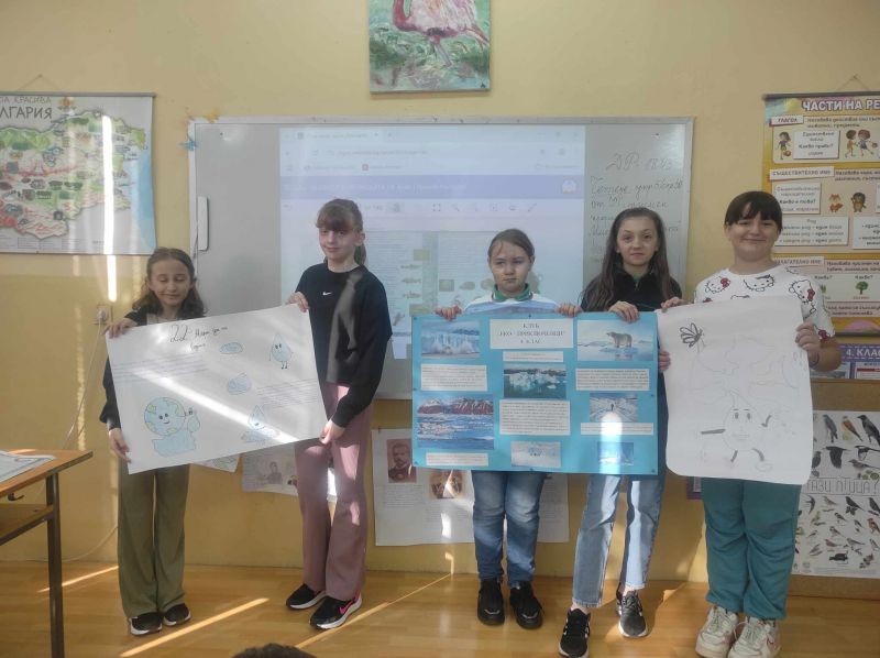 На 22 март, Световния ден на водата, четвъртокласниците от клуб "Еко-приключенци" демонстрираха своята ангажираност към опазването на водните ресурси и ледниците. Децата изработиха впечатляващи постери с послания, насочени към съхраняването на водата и защитата на ледниците.