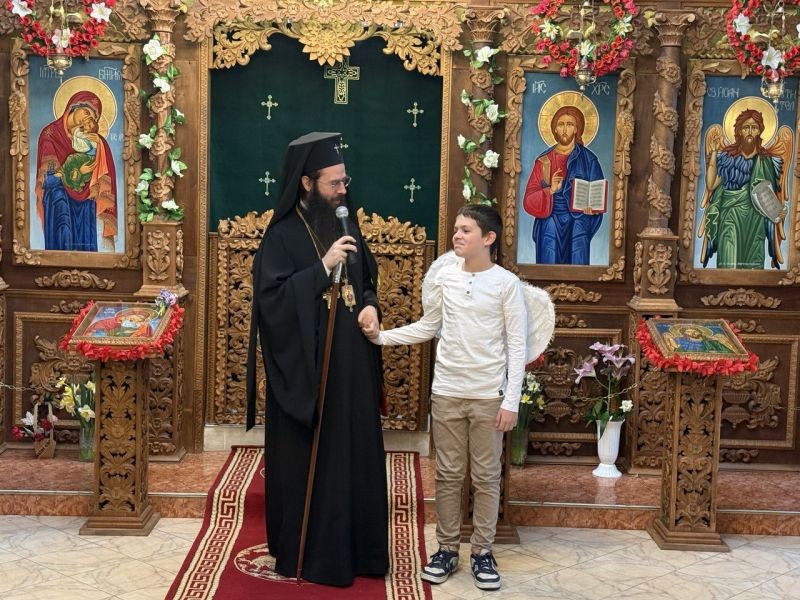В края на детските изпълнения Владиката благодари на децата за труда и усърдието им в обучението по вероучение, и им подари икони с образа на св. Серафим Софийски, броенички, нагръдни медальони с образа на св. Богородица и духовна литература. Децата също поднесоха на митрополита своя подарък - изработено от хартия ангелче и картичка с детско послание.