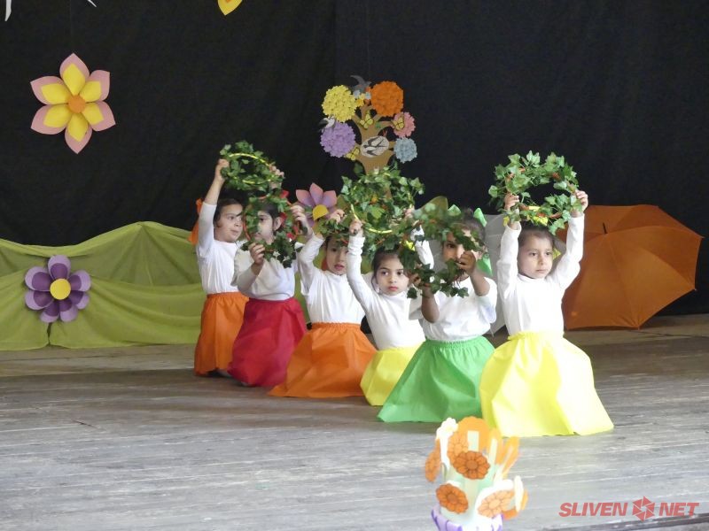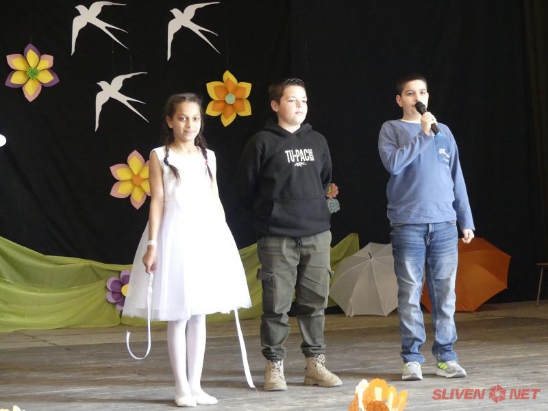 Със звънливи песни, танци и стихотворения, изпълнени от възпитаниците на детската градина и училището, публиката беше заредена с настроение и пролетен дух. Децата се представиха в пъстри костюми, с усмивки и много ентусиазъм, посрещайки новия сезон с радост и надежда.