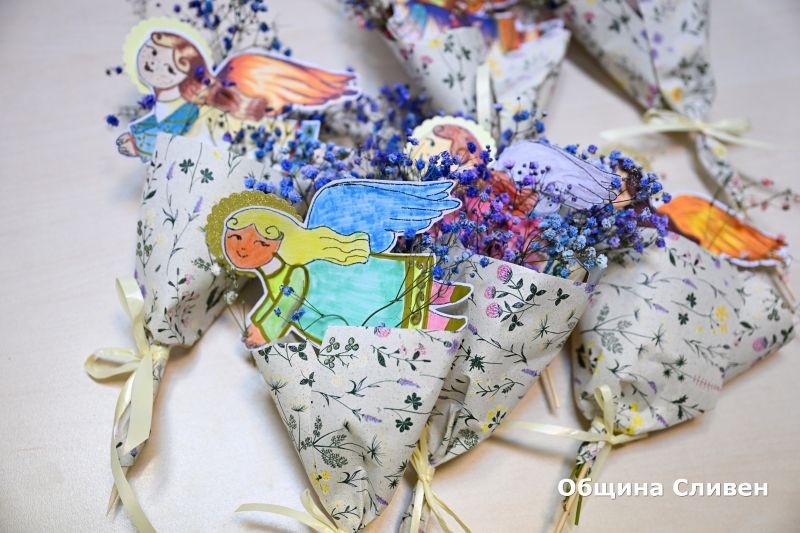 Инициативата по повод светлия християнски празник се проведе с благословението на Сливенския митрополит Арсений. На всяка от дамите в общинската администрация беше поднесен букет с интересна аранжировка - ангел, държащ в ръцете си бяло цвете.