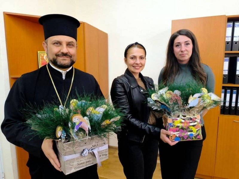 Подаръци от владиката получиха децата, а на екипа на детската градина г-жа Ани Вълева поднесе ангели с цветни букети за празника Благовещение в знак на признание към тяхната отдаденост като майки и учители.