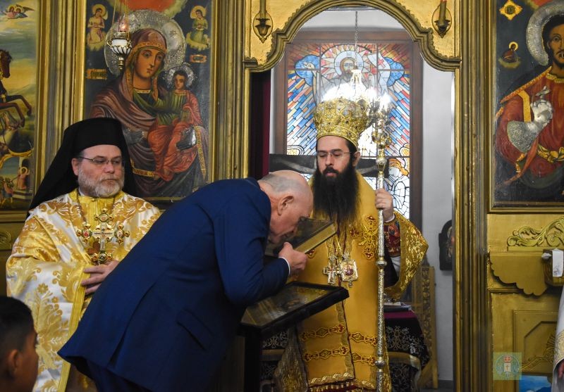 В края на Литургията митрополит Арсений поздрави всички с празника на град Елхово и подари икона с образа на Спасителя и Библия на кмета на града г-н Петър Гендов.