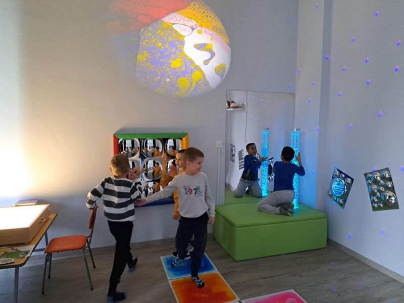 „Сензорни приключения“ - В специално оборудваната сензорна стая децата се насладиха на различни сетивни преживявания, които стимулират тяхното развитие и помагат за релаксация и концентрация.