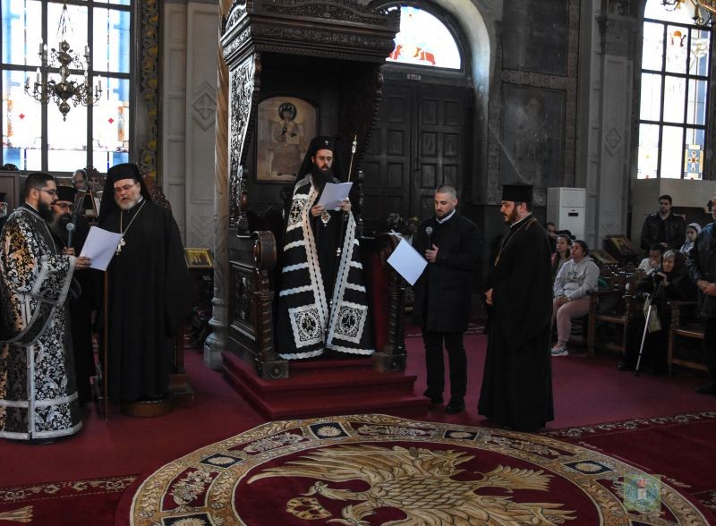 Митрополит Арсений заедно с духовенството и клиросните певци антифонно изпя песнопенията на последованието.