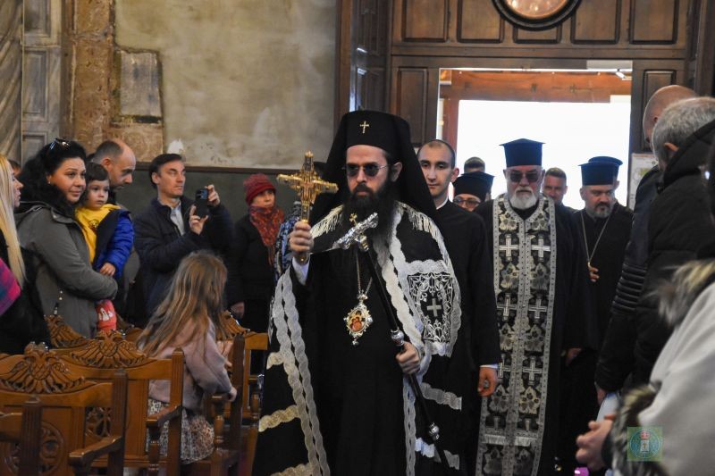 При запяването на светилния “Чертог Твой вижду...” от светия Олтар бе изнесена иконата с образа на Страдащия Спасител с трънен венец, която бе поставена в средата на храма за поклонение.