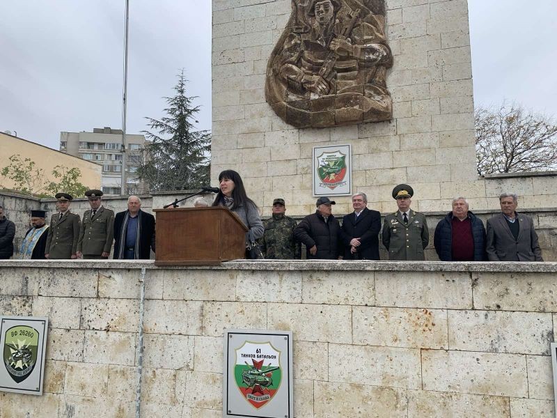 Фатме Мустафова бе гост на тържествения строй и награждаването на военнослужещи по случай празника. Тя положи цветя пред паметника на танкиста и връчи поздравителен адрес от името на областния управител Чавдар Божурски.