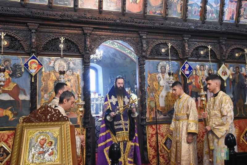 След просителната ектения на Вечернята при пеенето на стиховната стихира „Егда от древа” свещенослужителите изнесоха от св. Олтар Плащаница, изобразяваща погребението на Христос, която бе положена в центъра на храма върху украсена кувуклия, изобразяваща гроба Господен.