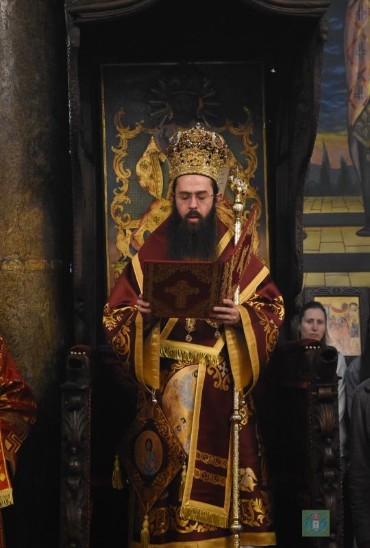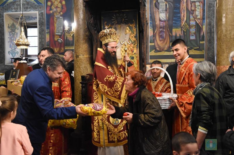 Негово Високопреосвещенство се обърна към всички присъстващи с архипастирско Пасхално послание, поздрави всички със всепобедния поздрав: „Христос Воскресе!” и раздаде на православните християни в храма по едно червено яйце и козунаци.