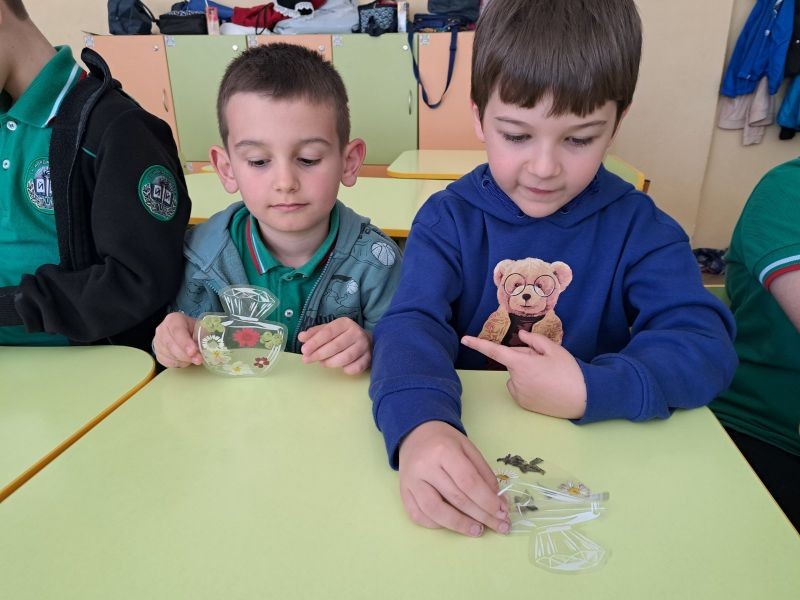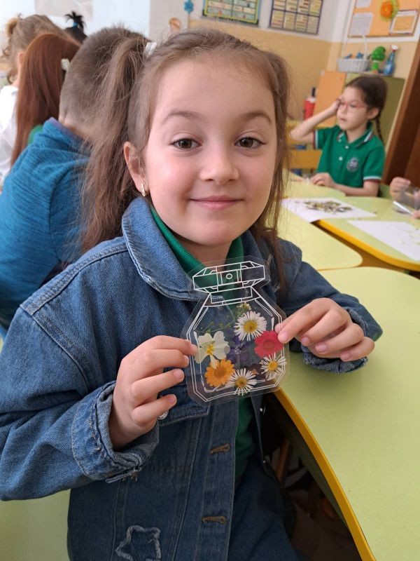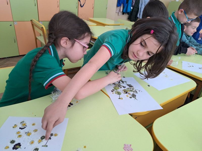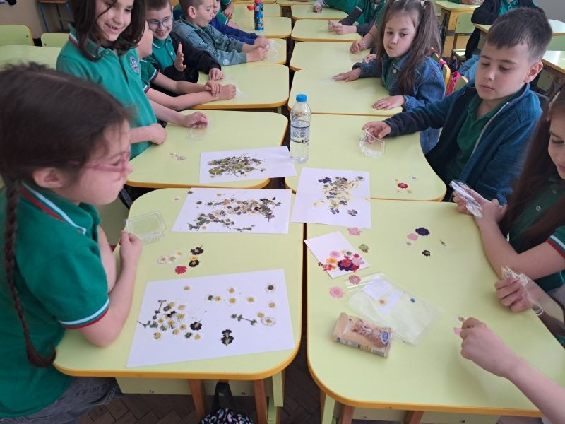 Учениците от първи клас, с класен ръководител Таня Чотова, отбелязаха Деня на Земята с уникален и вдъхновяващ проект. Малките ученици собственоръчно изготвиха хербарий от цветя, които внимателно събраха и запазиха. Днес тези цветя оживяха отново, превръщайки се в красиви и функционални книгоразделители, изработени от децата с много старание и креативност.