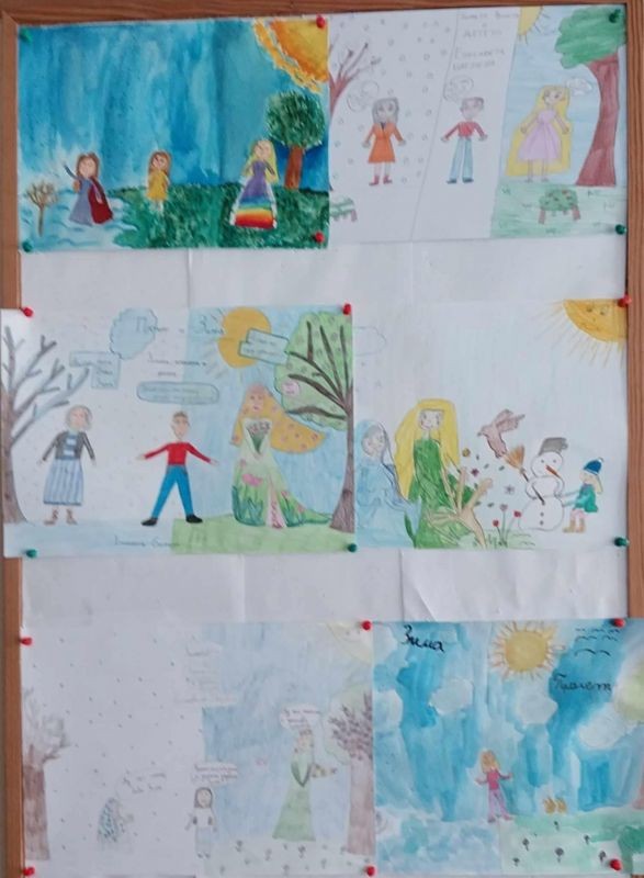 В Дните на Багряна третокласници откриха изложба с рисунки. В техните произведения грейна красотата на природата ни. Учениците показаха добри умения и въображение. С моливи, четки и боички успяха да изразят емоции и мисли, вдъхновени от стихотворението на Елисавета Багряна - "Зимата, пролетта и детето".