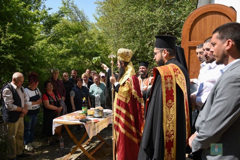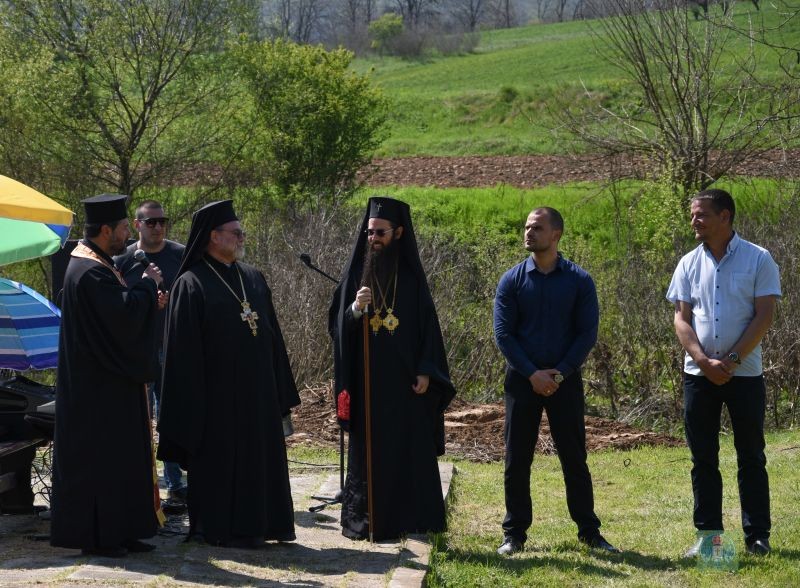 След представянето митрополит Арсений и отците отслужиха пасхален водосвет при аязмото, където се е случило чудото с проглеждането на Велик от с. Зидарово.