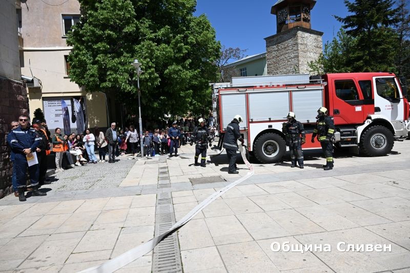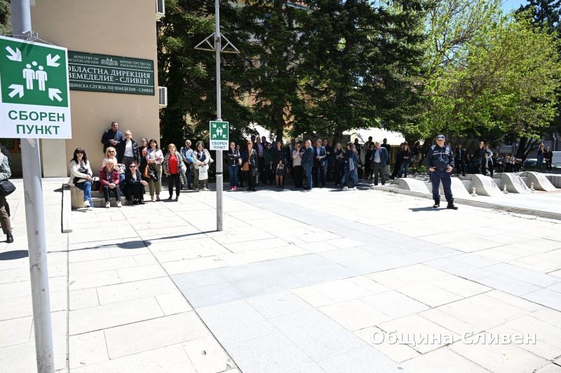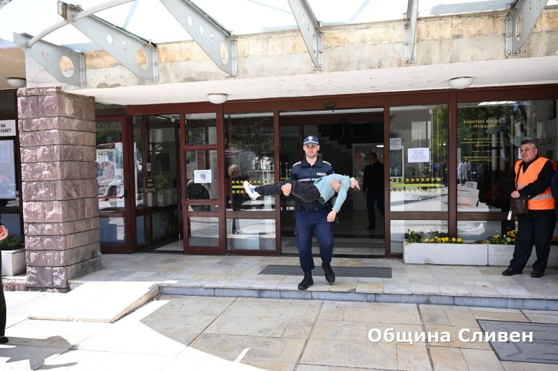 Тренировка с евакуация при възникнал пожар се проведе в северната сграда на Община Сливен днес. Евакуацията беше с прякото участие на екипи от основния състав на единната спасителна система – полиция, пожарна, спешна помощ и Български червен кръст, екип от „Общинска охрана и СОТ Сливен“. В симулацията участваха десет полицаи, три пожарни автомобила, линейка за спешна помощ и екип с автомобил на БЧК и служители на общинската охрана.