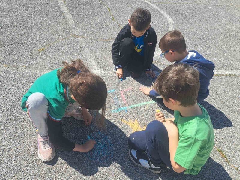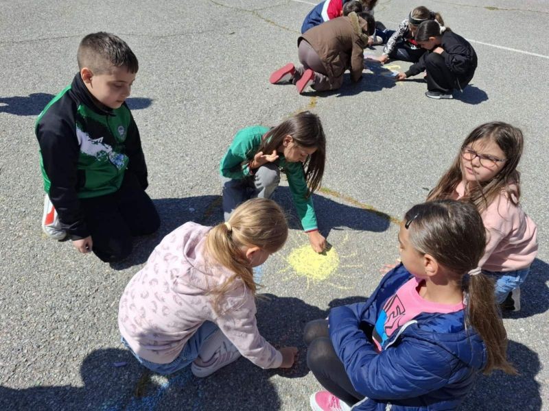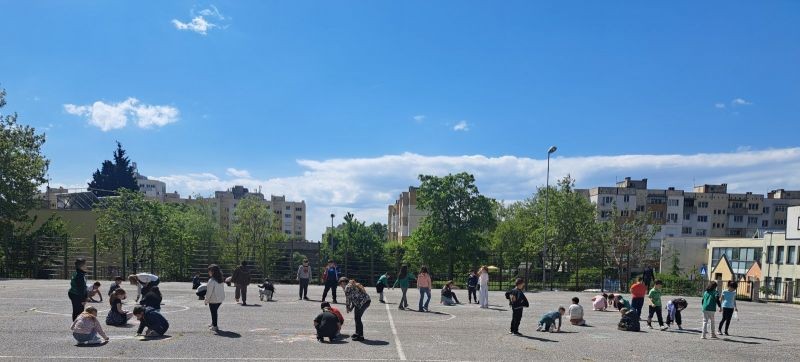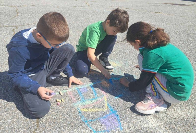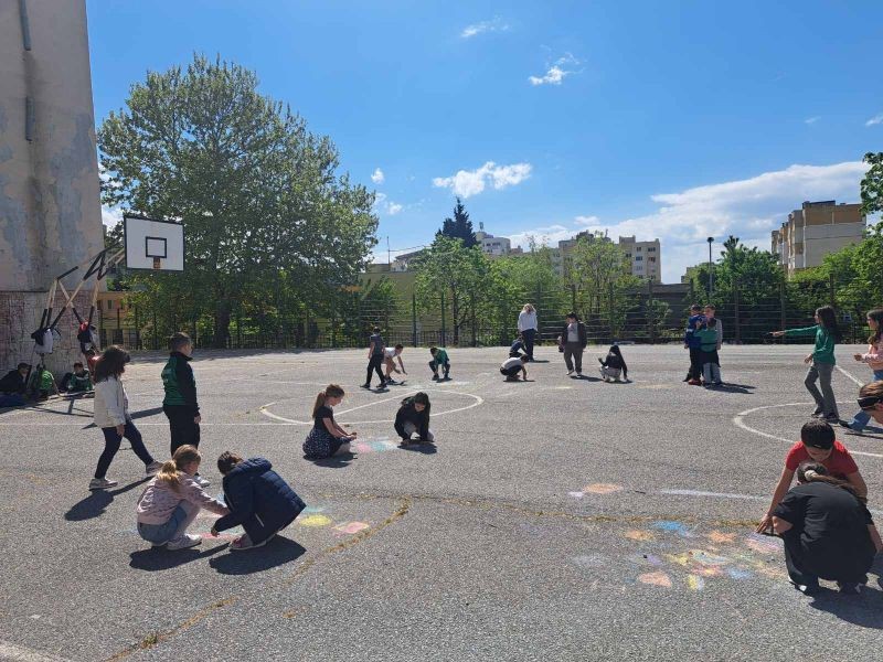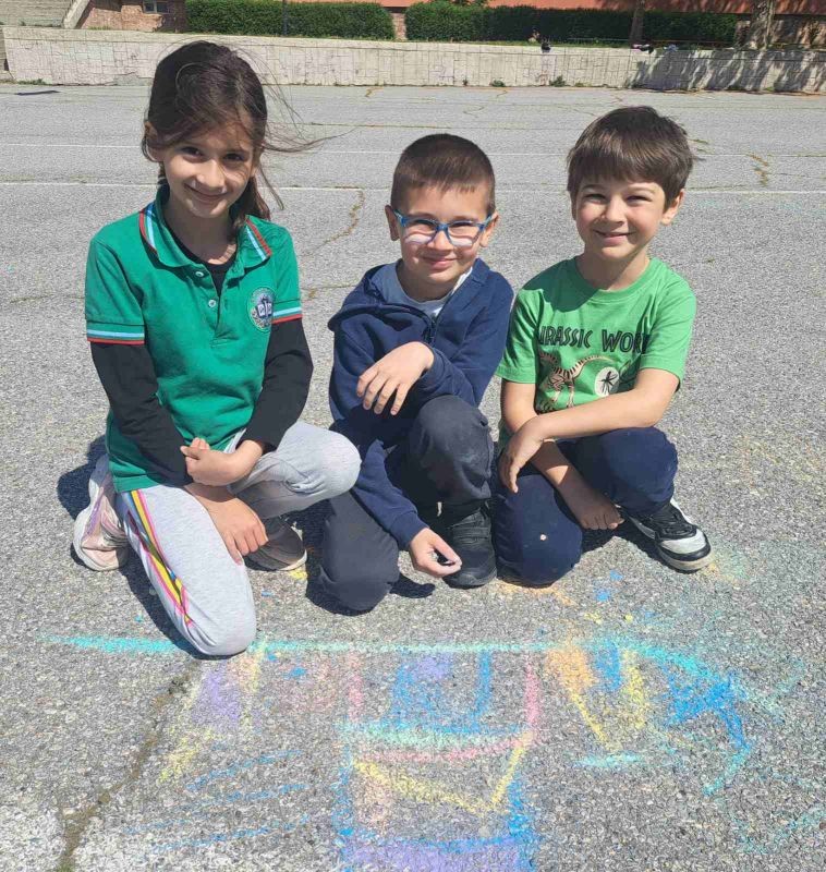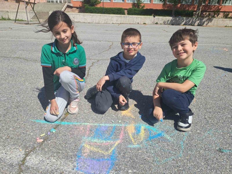 Учениците от 1. и 2. клас показаха своята креативност и талант по време на часовете по Изобразително изкуство, като превърнаха училищния асфалт в истинско произведение на изкуството!
