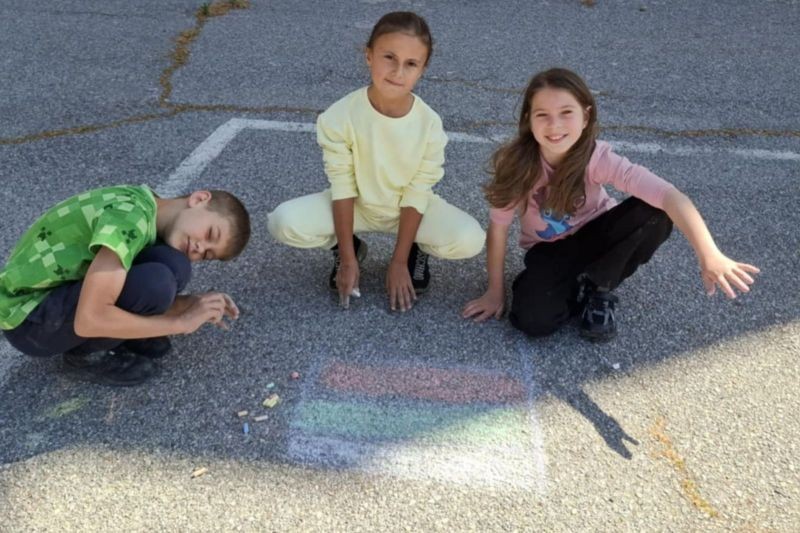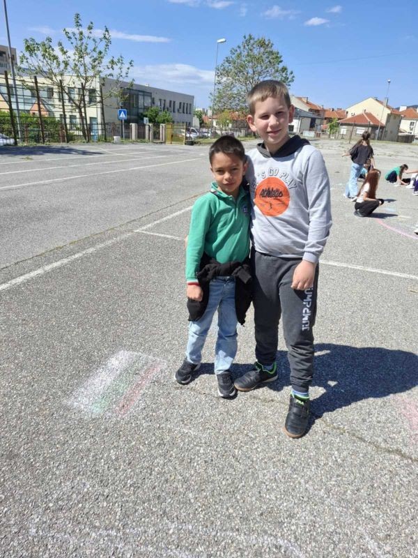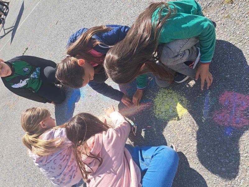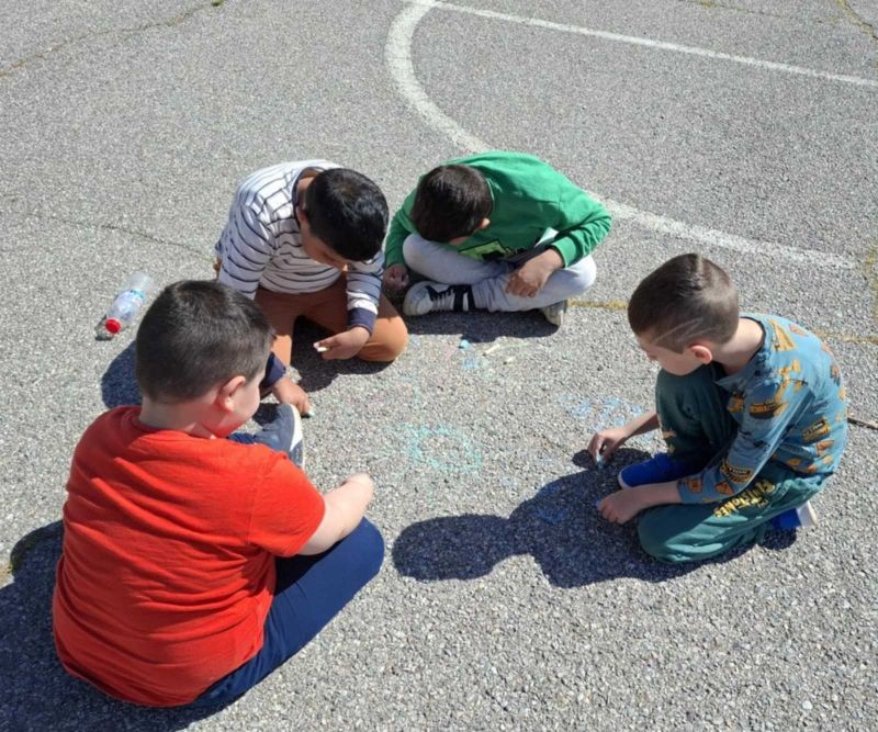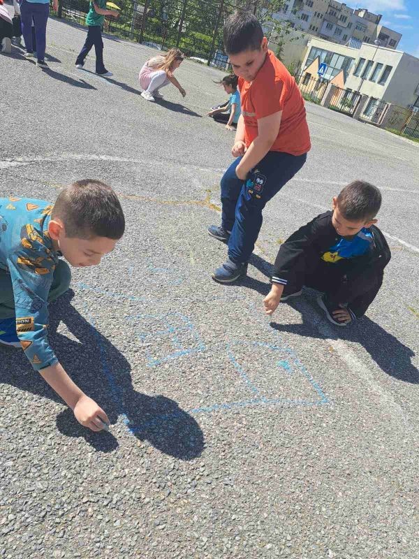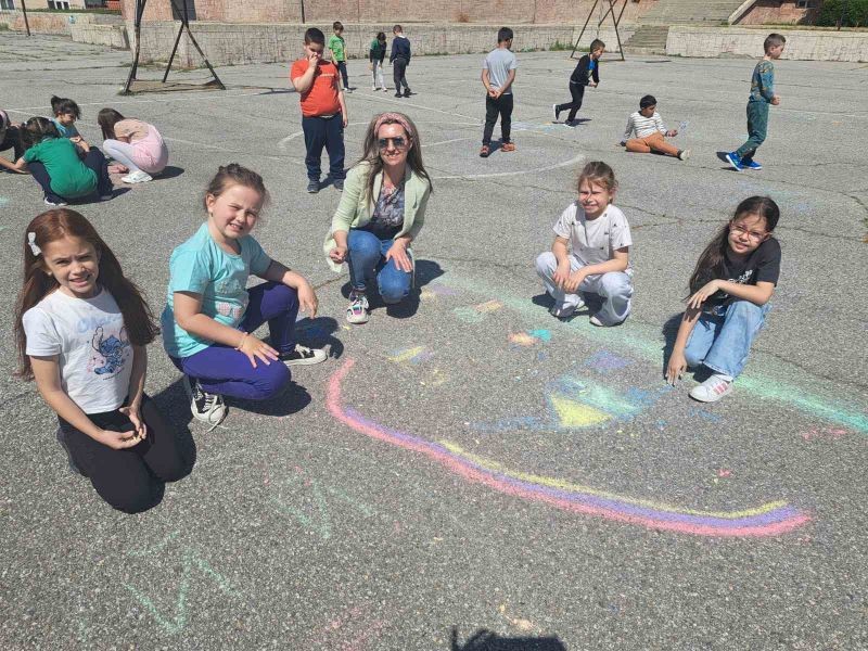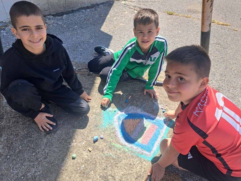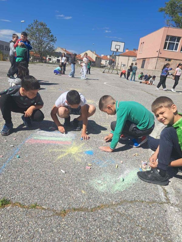 Разделени на екипи, малките художници работиха с голямо вдъхновение, използвайки цветни тебешири, за да създадат впечатляващи рисунки. Темите на творбите им бяха разнообразни – слънчеви пейзажи, весели животни, вълшебни приказни сцени и символи на приятелството.