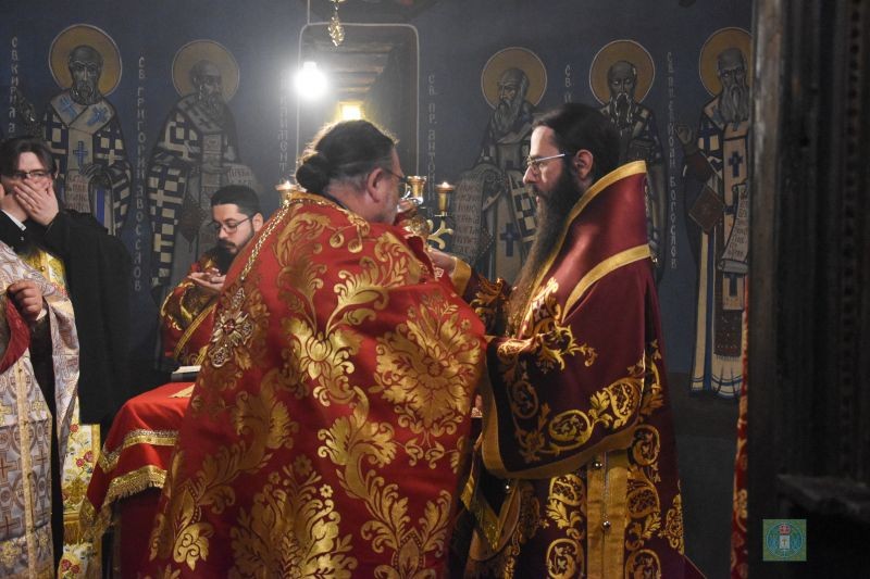 В съслужение с владиката бяха: архимандрит Димитрий - протосингел на Сливенска света митрополия и архиерейски наместник на Бургаска духовна околия, свещ. Димитър Илиев - председател на храма, и митрополитският дякон Владимир Рогачев.