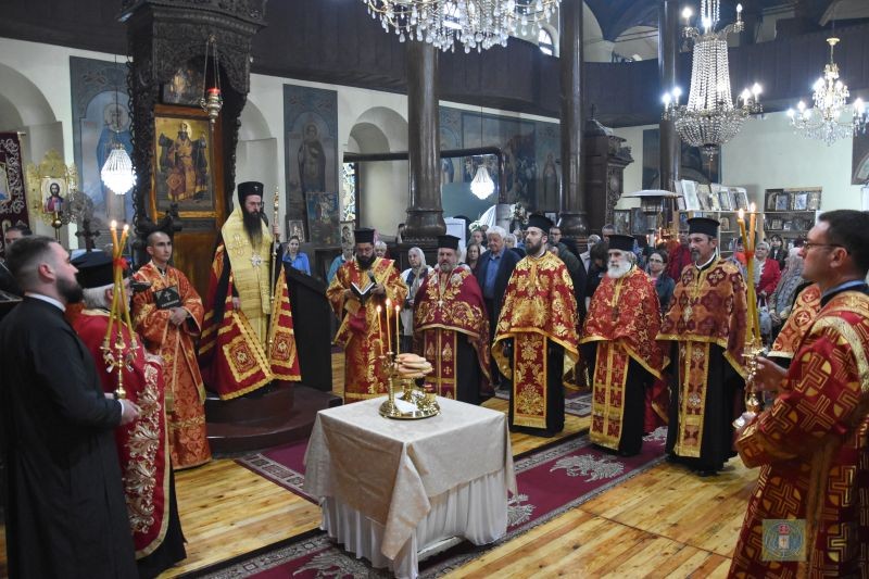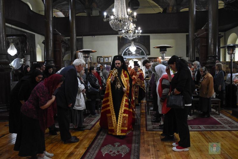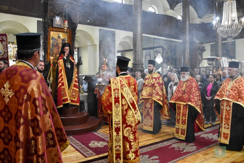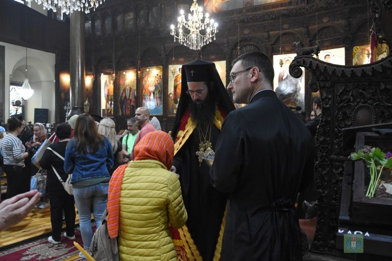 В края на вечерното богослужение владиката поздрави всички с празника на св. Георги и раздаде благословеното петохлебие.