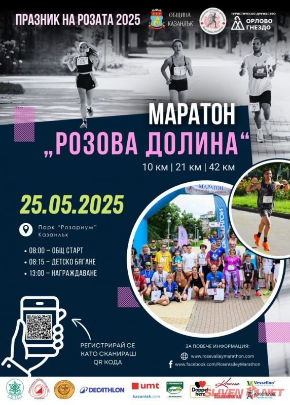 На 25 май 2025 г., от 08:00 ч., Казанлък отново ще се превърне в арена на спортния дух и красотата на природата с провеждането на четвъртото издание на Маратон „Розова долина“. Събитието се организира от Община Казанлък и Туристическо дружество „Орлово гнездо“ и има за цел да насърчи физическата активност и здравословния начин на живот, като същевременно разкрие очарованието на един от най-живописните региони в България.