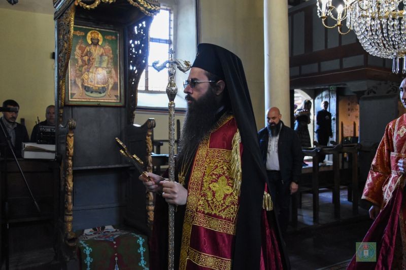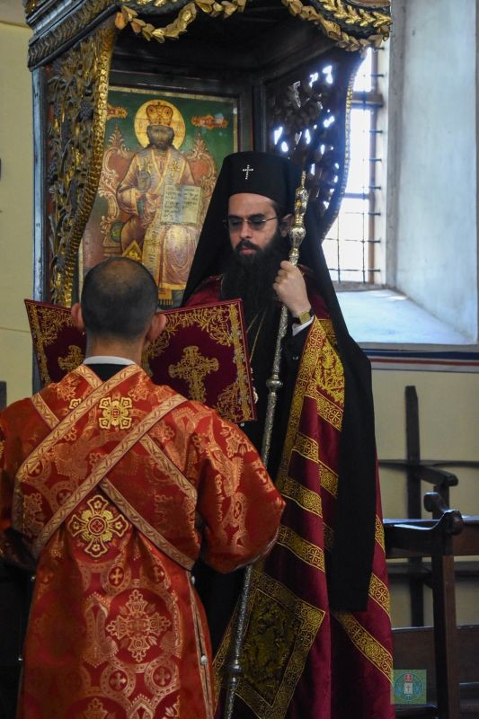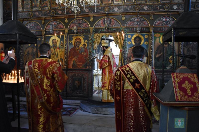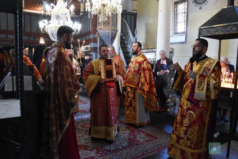 С Митрополита съслужиха: архимандрит Димитрий - протосингел на св. Митрополия и архиерейски наместник на Бургаска духовна околия, ст. ик. Димитър Сотиров - архиерейски наместник на Котелска духовна околия и председател на храма, ик. Йоан Петров - архиерейски наместник на Ямболска духовна околия, ик. Панайот Сотиров - епархийски духовен надзорник, свещ. Серафим Димитров, патриаршеският протодякон Александър Нешев и митрополитският дякон Владимир Рогачев.