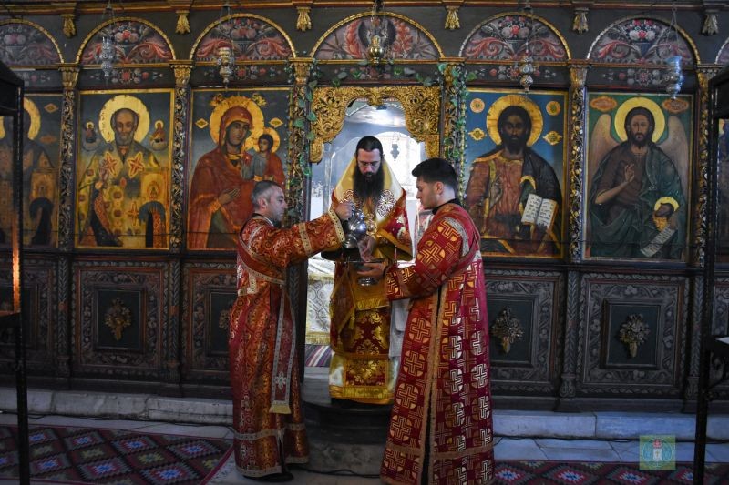 На 9 май - Пренасяне мощите на св. Николай Мирликийски Чудотворец, Негово Високопреосвещенство Сливенският митрополит Арсений възглави архиерейска света Литургия в храм “Св. Николай Чудотворец” в село Жеравна.