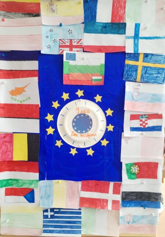 На 9 май четвъртокласниците от групата за ЦОУД с ръководител Здравка Монева с вълнение отбелязаха Деня на Европа, превръщайки игротеката в миниатюрен континент, изпълнен с цветове и символи. Те създадоха впечатляващо табло, включващо националните флагове на всички 27 страни-членки на Европейския съюз.