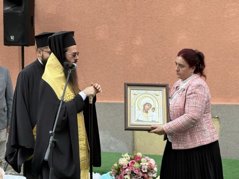 Владиката подари на училището по повод юбилея камбана, която да възвестява учебните занятия, а на директора г-жа Веселина Маринова - икона с образа на Пресвета Богородица.