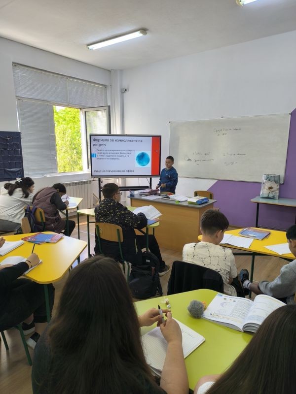 Сред вдъхновяващите участници се открои Йордан Певецов – ученик от VI клас, който пое ролята на учител по математика. С неподправена любов и отдаденост към точната наука, Йордан представи урок на тема „Сфера и повърхнина на сферата“ по един изключително увлекателен и иновативен начин. Използвайки интерактивни приложения и визуални модели, той превърна занятието в истинско математическо приключение.