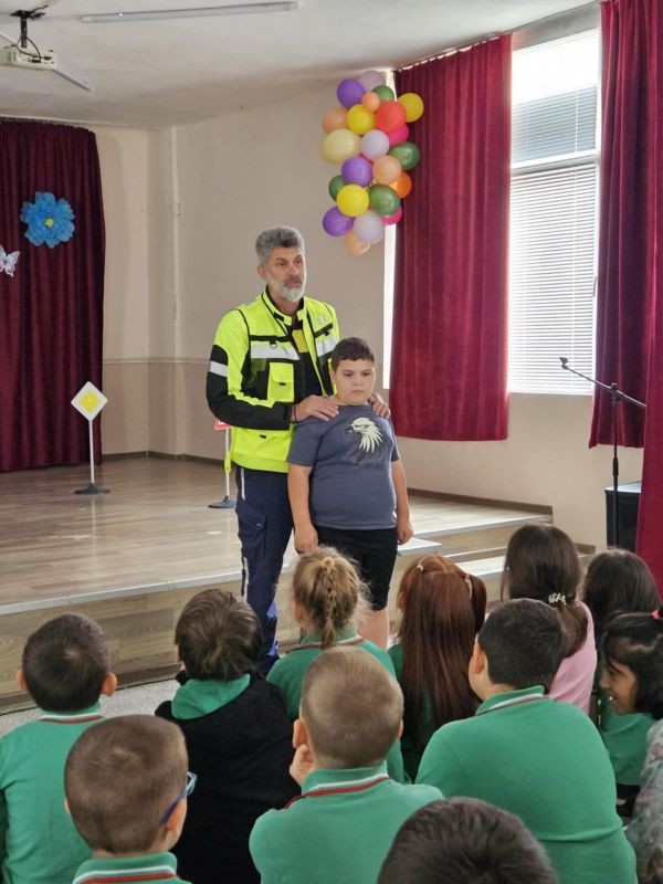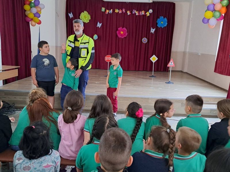 Специален гост на мероприятието беше Николай Стойчев – автоконтрольор в сектор „Пътна полиция“ – Сливен, който с много ентусиазъм и достъпни примери успя да привлече вниманието на децата и да ги запознае с основните принципи на безопасното придвижване. Чрез демонстрации, забавни въпроси и практически задачи учениците научиха как да се движат безопасно по тротоара, как да пресичат на пешеходна пътека и защо е важно да бъдат внимателни и отговорни участници в движението.