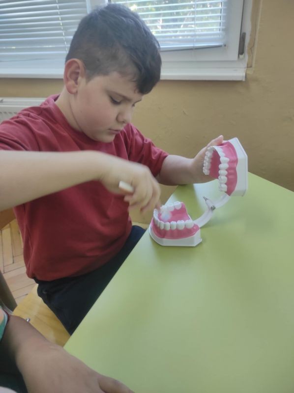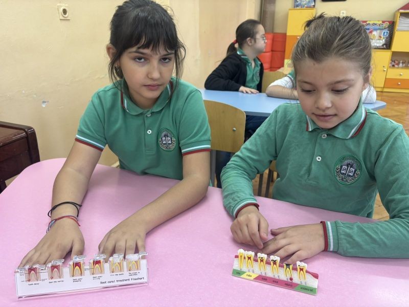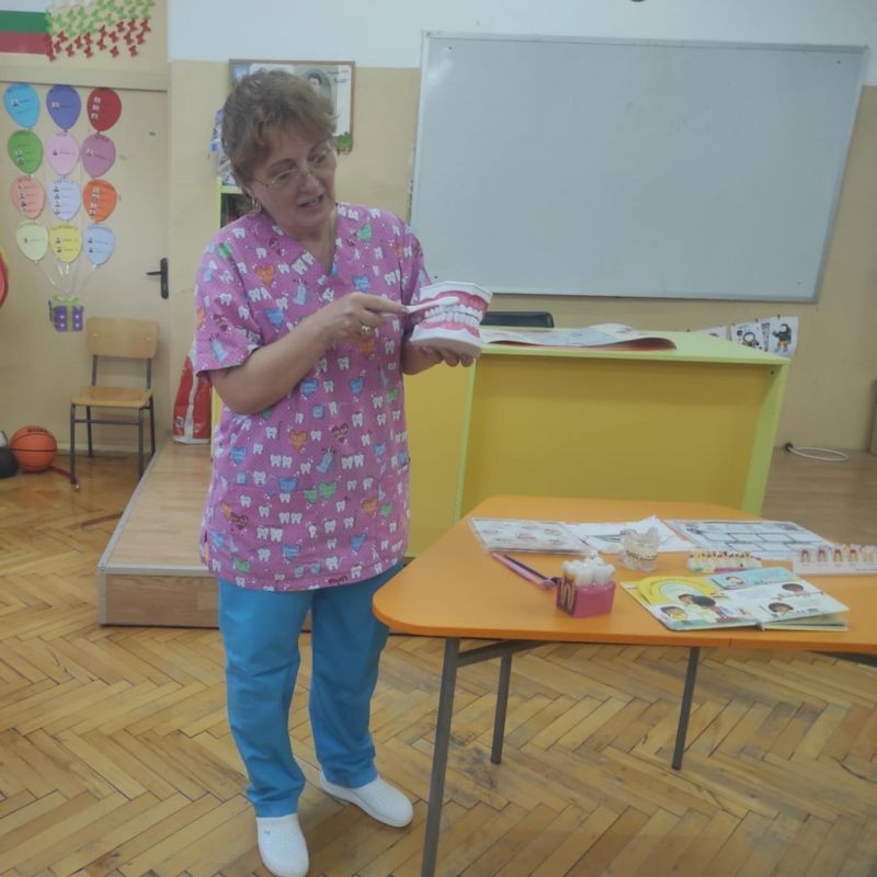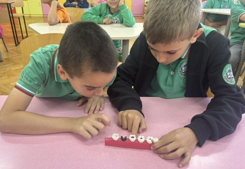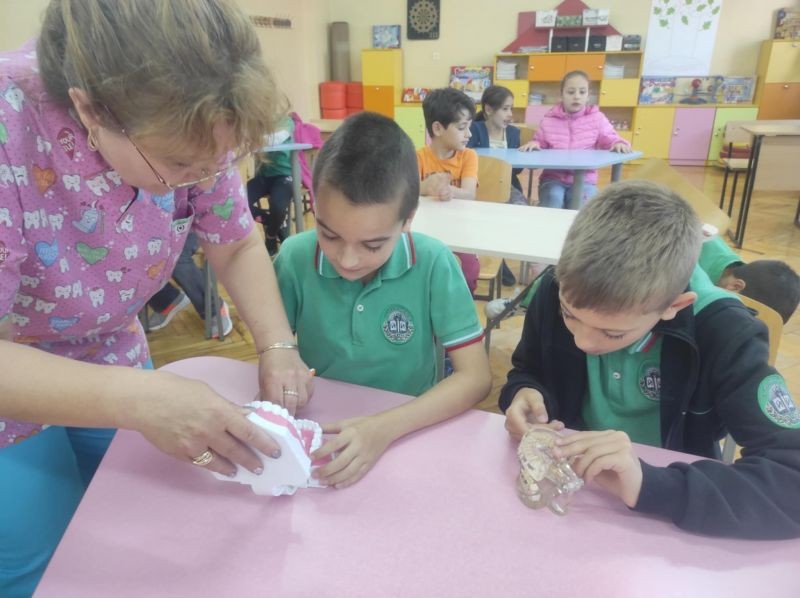 С много усмивки, любопитство и активност, учениците се потопиха в света на зъбите – какви видове има, каква е тяхната роля и как да ги поддържаме здрави. Д-р Граменова представи темата по изключително достъпен и увлекателен начин, като донесе със себе си макети на зъби и стоматологични инструменти, които децата разгледаха с голям интерес.