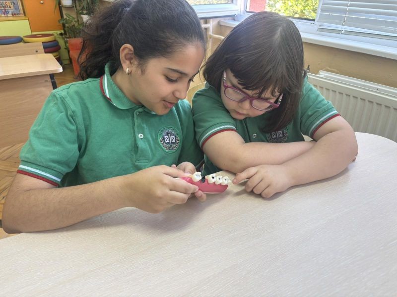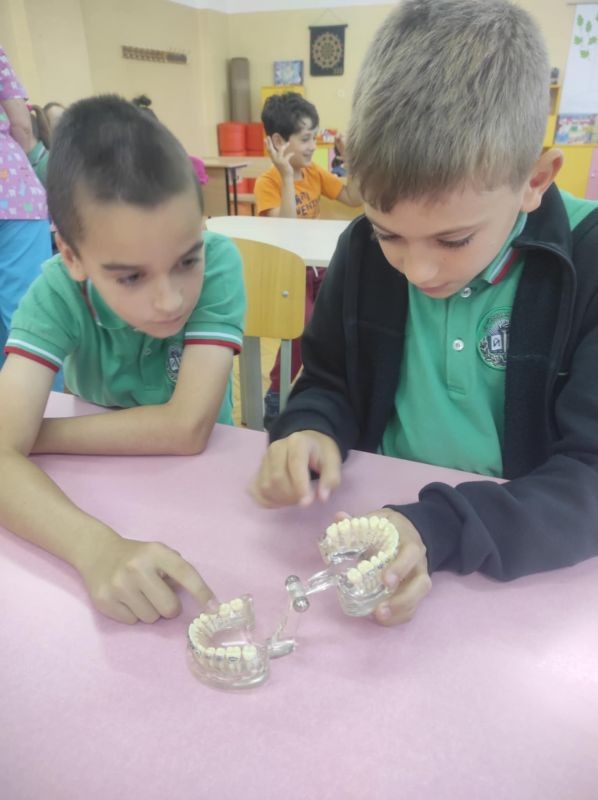 С много усмивки, любопитство и активност, учениците се потопиха в света на зъбите – какви видове има, каква е тяхната роля и как да ги поддържаме здрави. Д-р Граменова представи темата по изключително достъпен и увлекателен начин, като донесе със себе си макети на зъби и стоматологични инструменти, които децата разгледаха с голям интерес.