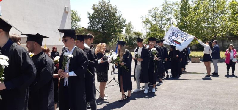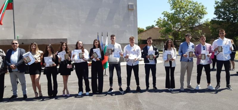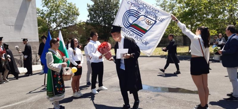 Дванадесет са отличниците на випуск 2025 на нашето училище, донесли повече от 50 медала от различни състезания по време на своето обучение. Трима завършват с пълно отличие - Християна Василева - лека атлетика; Никол Митева - спортна акробатика и Станислав Стоянов - футбол. Девет ученици завършват с успех от 5,50 до 5,99. Дворът беше изпълнен с ученици, учители, треньори, родители. Приветствие към зрелостниците поднесе директорът на училището - Лъчезар Дойчев. Завършващите бяха подготвили номинации за всеки от учителите. В края на тържеството настъпи сбогуването с училищното знаме. Имаше сълзи и радост, след което се проведе последния час на класовете с класни ръководители - на 12а клас г-жа Галина Стефанова и на 12б клас г-жа Ирина Захариева. Представяме Ви емоциите, които заляха присъстващите и бяха запечатани в много снимки за спомен. Националният флаг днес бе издигнат от десетокласничката Марияна Узунова, бронзова медалистка от световно първенство по скокове на батут - синхрон в началото на тази година.