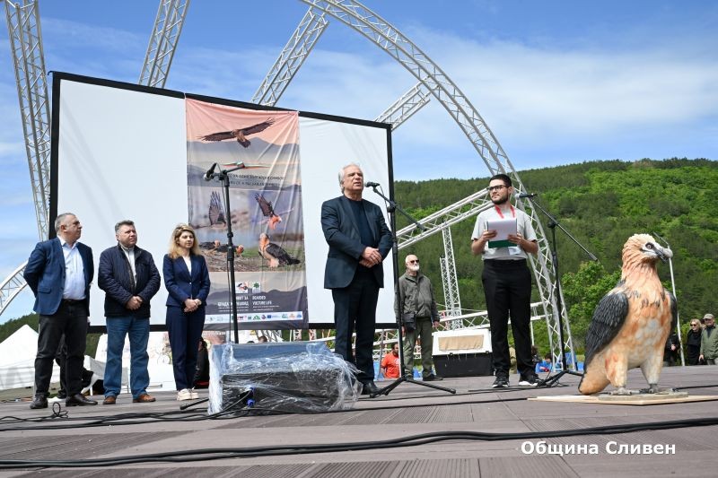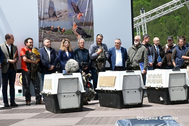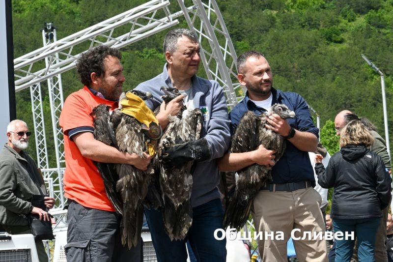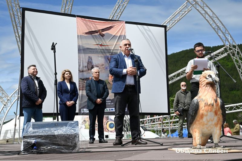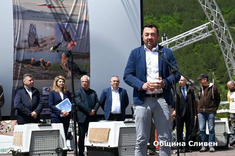 “ За мен е истинска чест точно Сливен да бъде домакин на това чакано дълги години събитие. Нашата община подкрепя усилията на всички, които участват в опазването на защитените видове. Благодаря на всички, които неуморно са работили за този исторически момент. Те заслужават огромно уважение и подкрепа. Да си пожелаем успешно завръщане и адаптация на птиците, за да се върнат над родното небе брадатите лешояди”, каза Кметът Стефан Радев. На него беше предадена символично една от птиците.