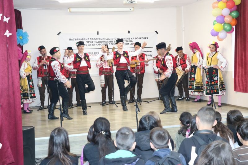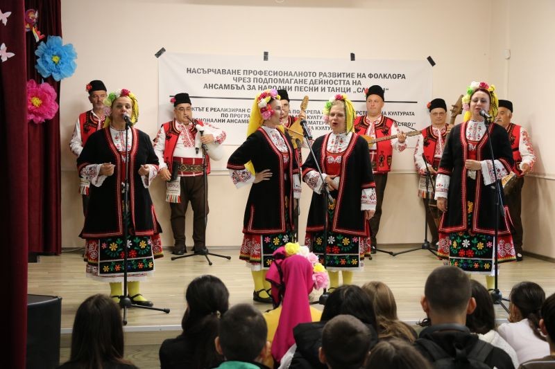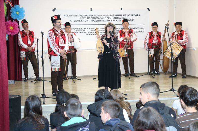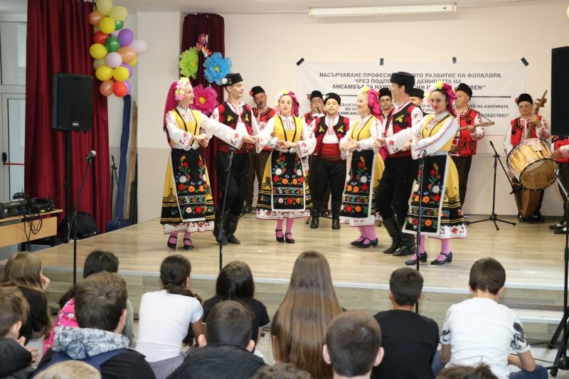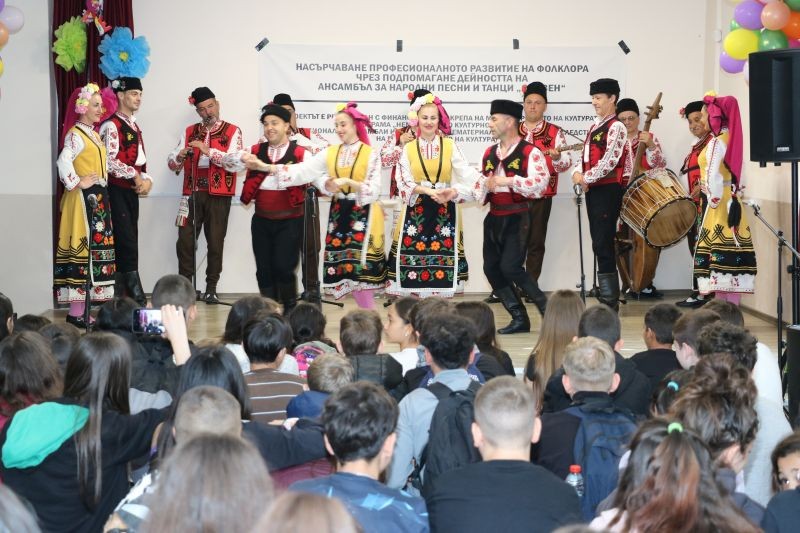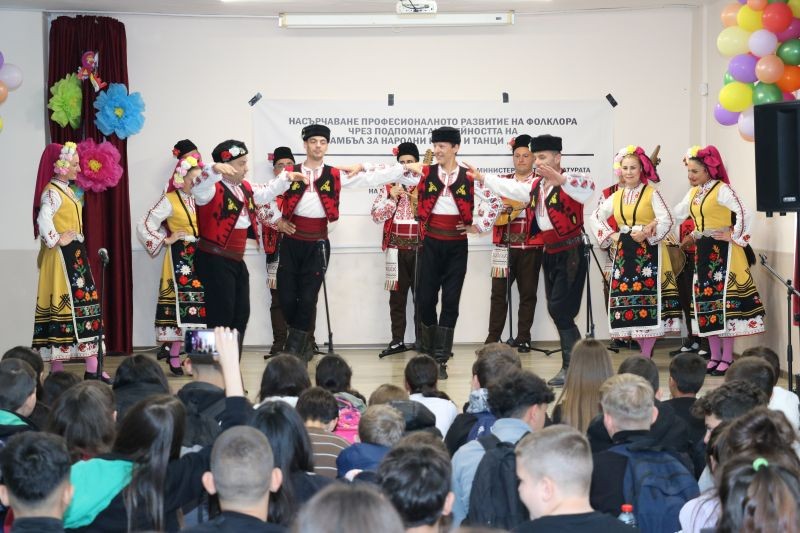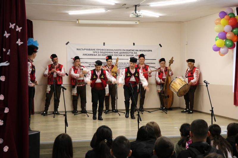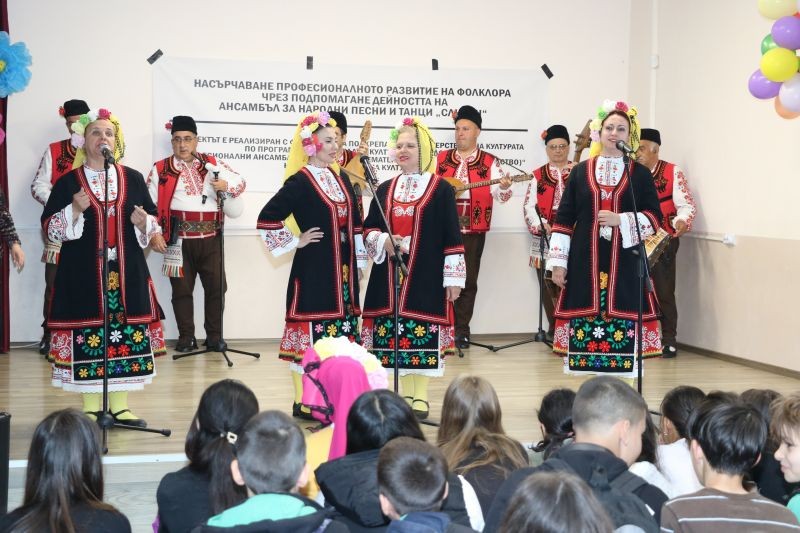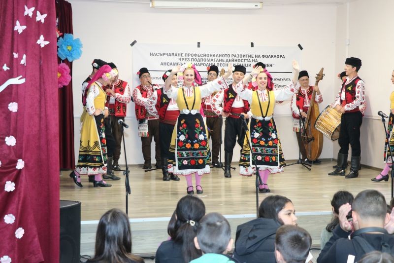 СУ „Йордан Йовков“ се превърна в сцена на българския дух и традиции, когато залата се изпълни с магията на народната музика и танци. Поводът бе вдъхновяващият образователен концерт на Ансамбъла за народни песни и танци – Сливен, който остави траен отпечатък в сърцата на учениците и преподавателите.