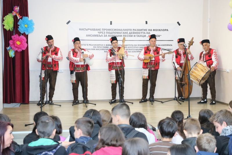 Учениците от всички етапи на обучение – начален, прогимназиален и гимназиален – имаха уникалната възможност да се докоснат до звученето на традиционни български инструменти като кавал, гайда, гъдулка, тамбура, контрабас и тъпан. По увлекателен и достъпен начин те научиха за значението и ролята на тези инструменти в богатата ни фолклорна традиция.