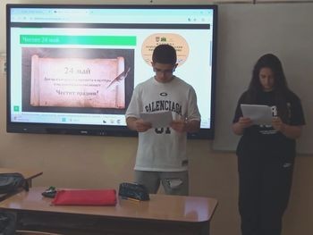 Днес, 22 май в, 11:00 ч. ученици от цялото училище рецитираха текста, слушаха или пяха химна на българската просвета „Върви, народе възродени!“ по стихове на Стоян Михайловски, създадени 1892 г., и по-късно превърнати в песен с музиката на Панайот Пипков.