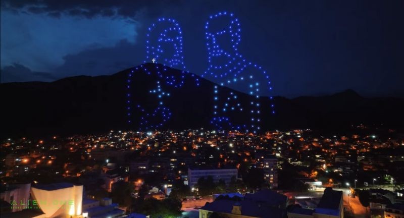 Дългоочакваната появява на 250 дрона в небето прикова погледите на всички присъстващи на площад "Хаджи Димитър". Разноцветните светлини на машините рисуваха символи на българската просвета и вяра - образите на братята Кирил и Методий, разтворена книга с дърво на знанието, православен храм, Христовият кръст, букви от азбуката, на фона на дикторски глас и патриотични музикални мотиви.