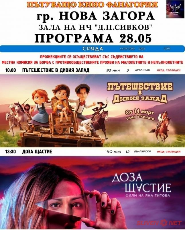 На 28 май 2025 г. в театралния салон на НЧ „Д. П. Сивков – 1870“ се проведе вълнуващо събитие – Пътуващо кино „Фанагория“, организирано от Местната комисия за борба с противообществените прояви на малолетни и непълнолетни – Нова Загора. Инициативата бе посветена на Международния ден на детето – 1 юни, и се превърна в подарък за учениците от града, като постави акцент върху възпитателната и социалната роля на киното.