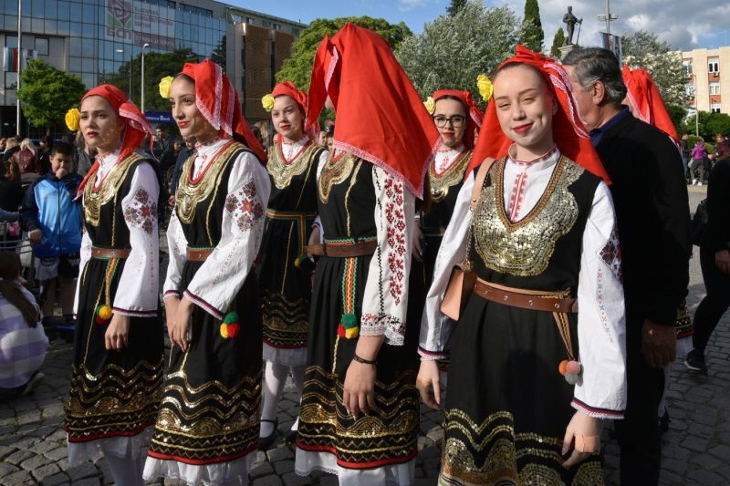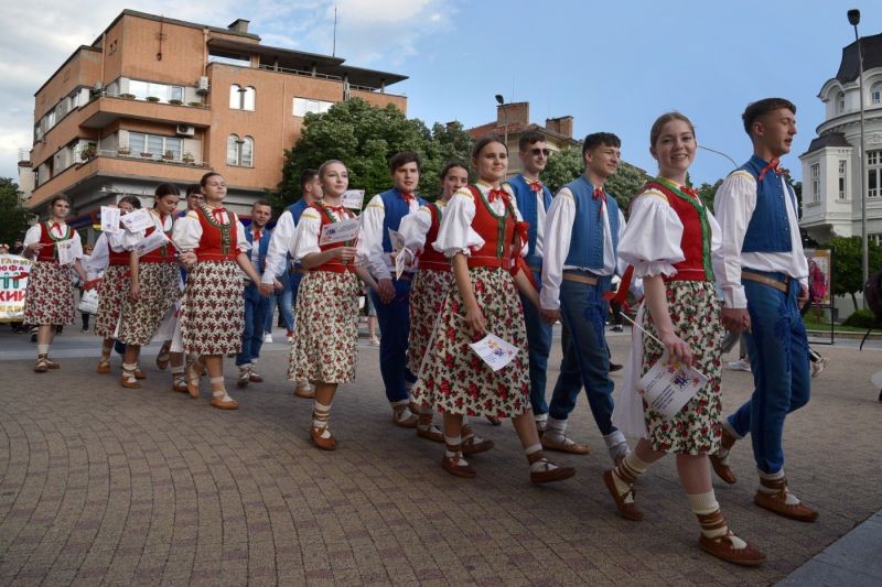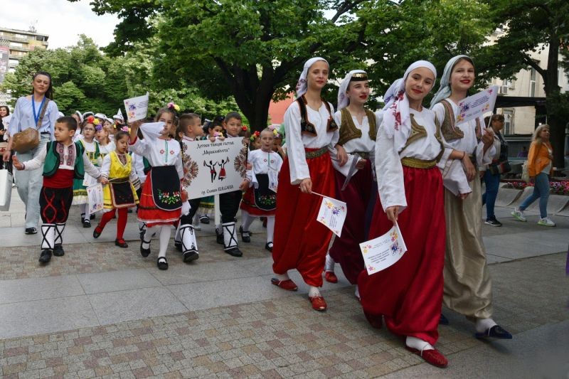 Пъстро шествие на всички танцови състави оцвети „Розова градина“, Главната улица и централния площад „Хаджи Димитър“, където се състоя официалното откриване на фестивала.