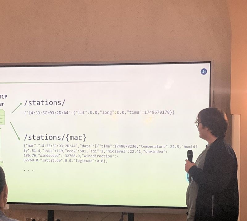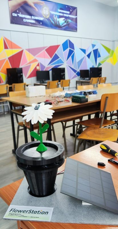 Атанас впечатли журито и публиката с високотехнологичния си проект „FlowerStation“ – иновативна, захранвана от слънчева енергия метеорологична станция, изградена с помощта на микроконтролери, специализирани сензори и 3D принтирани компоненти. Устройството измерва температура, влажност, UV индекс, качество на въздуха, шум, сила и посока на вятъра, а събраните данни се предават в реално време към сървър, визуализират се чрез уеб интерфейс и се съхраняват в база данни. Това позволява не само моментно проследяване, но и последващ анализ, сравнение във времето и извличане на по-задълбочени изводи за състоянието на околната среда. Освен това станцията разполага с GPS модул, който определя точните ѝ координати на картата и дава възможност на уеб платформата да сравнява резултатите от различни станции. Така се изгражда цяла мрежа от енергийно независими станции, които работят съвместно за събиране и анализ на екологични данни в различни райони.