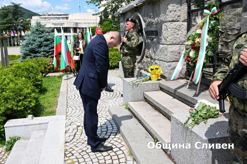 Точно в 12 часа, под воя сирените, жителите и гостите на Сливен сведоха глави в знак на почит и преклонение към саможертвата на героите на България. След това сливенският духов оркестър изпълни националния химн.