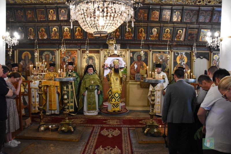 След св. Литургия бе отслужена и полагащата се в този ден вечерня с коленопреклонните молитви, които се четат само в този ден и чийто автор е св. Василий Велики. Владиката произнеси слово, в което говори за празника Петдесетница и разясни учението на светата Църква за Троичността на Бога.