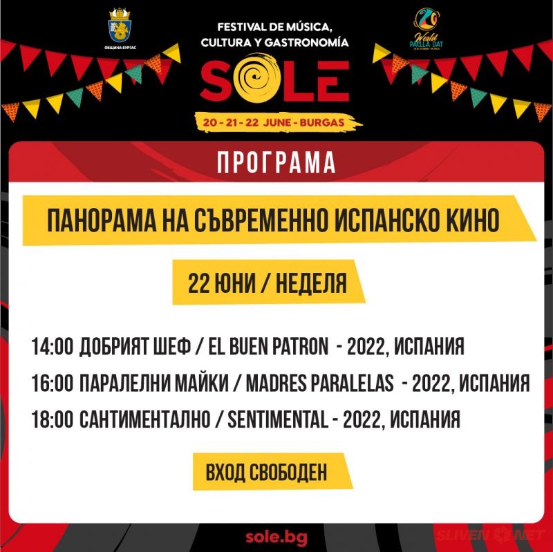 Всички събития от програмата следете тук https://www.facebook.com/SOLESpanishfestival/events или тук https://www.facebook.com/SOLESpanishfestival