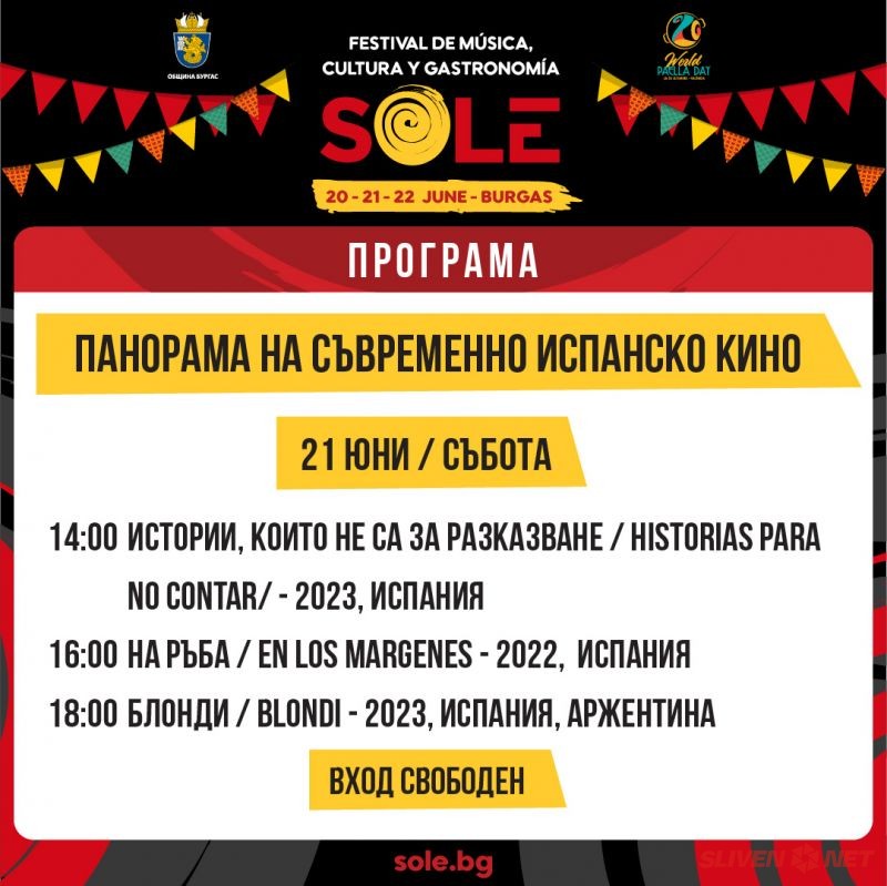 Всички събития от програмата следете тук https://www.facebook.com/SOLESpanishfestival/events или тук https://www.facebook.com/SOLESpanishfestival