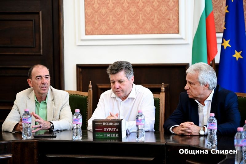 От името на кмета Стефан Радев, заместник-кметът Стоян Марков приветства госта с добре дошъл и му пожела да изпита това гостоприемство, с което се слави Сливен. Актьорът гостува в града по покана на Община Сливен. В рамките на визитата му, на сливенската публика и на младите хора, които се интересуват от театър, ще бъдат представени двете му книги „Към сцената“ и „Към екрана“ и се среща с млади хора, които се интересуват от театър и кино.
