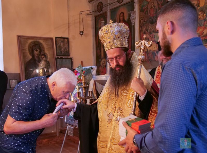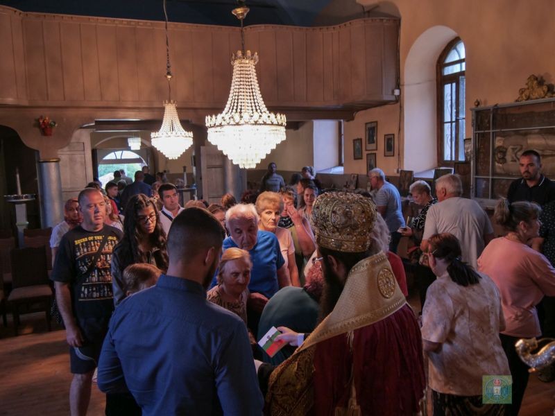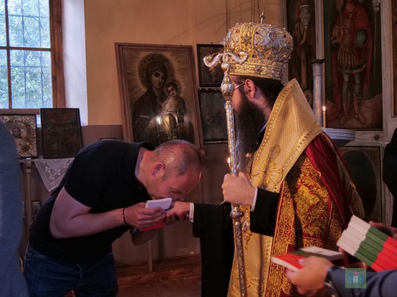 В съслужение с Владиката бяха енорийският свещеник икон. Жельо Димитров, протодякон Александър Нешев, йеродякон Поликарп и дякон Владимир. В края на молебена Владиката поздрави присъстващите с празника и раздаде на всички, за благословение “Библейски стослов”, издание на Сливенска св. Митрополия.