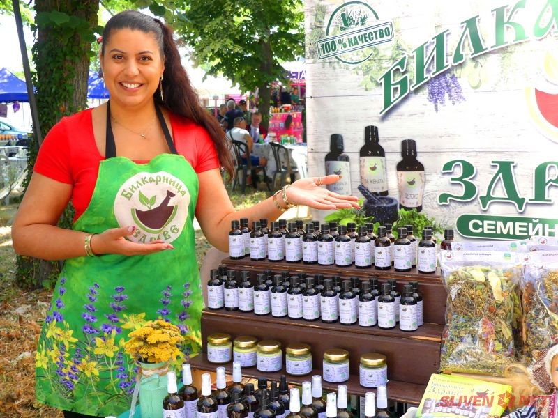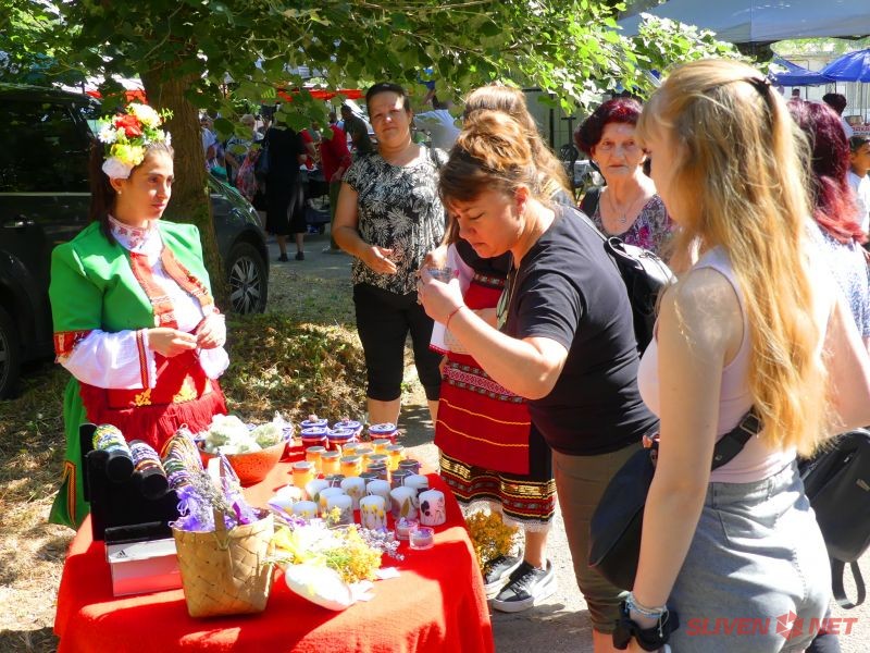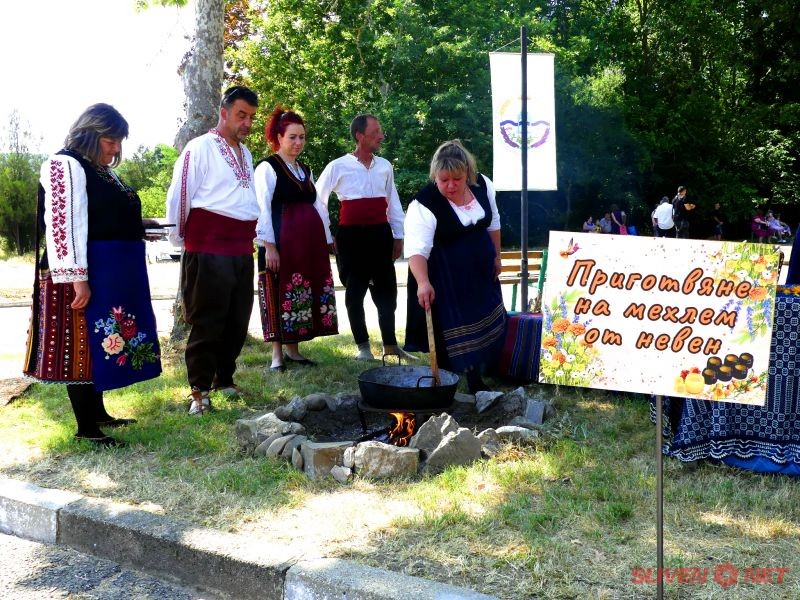 Еньовден не мина и без билки – посетителите разгледаха пъстър билков базар с продукти от цялата страна, включително демонстрация на приготвяне на мехлем от невен от жените на НЧ „Ст. Д. Сербезов – 1928“, с. Загорци.
