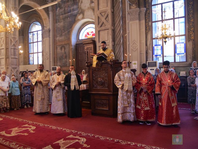 Литургичните песнопения изпълниха смесеният хор при Катедралата, под диригентството на г-жа Лина Пеева. Храмът се изпълни с множество православни християни, дошли да изпросят молитвеното застъпничество на светите първовърховни апостоли Петър и Павел, като някои от тях пристъпиха към Светите Тайни Христови.