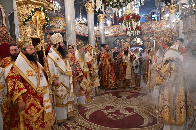 Литургичните песнопения изпълни митрополитският хор "Св. ап. Ерм" с диригент протопсалт Георги Радев и протопсалт проф. Йоанис Папахронис.