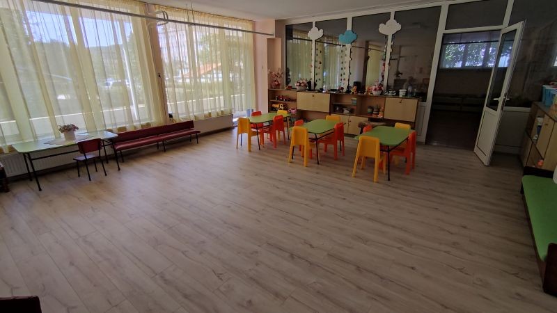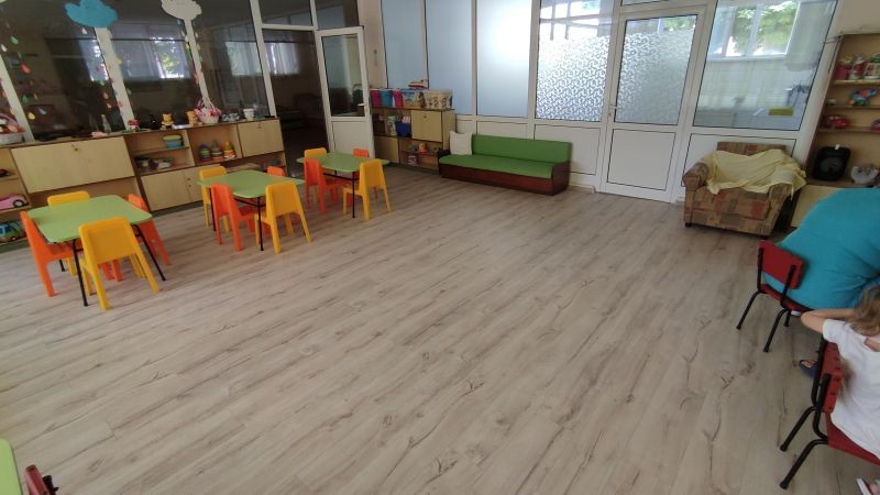 На обекта е извършен текущ ремонт в игралното помещение за първа група и на лекарския кабинет - доставена и монтирана нова подова настилка.