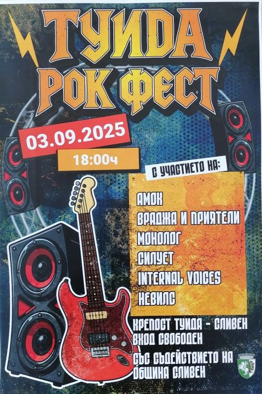 Почитателите на рока в Сливен ще имат възможност да се насладят на вечер, посветена на популярния музикален жанр. „Туида рок фест“ събира на една сцена сливенски групи, които подготвят вълнуваща вечер в подножието на Сините камъни.